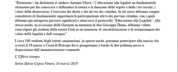 Questo il comunicato inviatoci dall'Ufficio Stampa del Comune di Santa Maria a Vico.