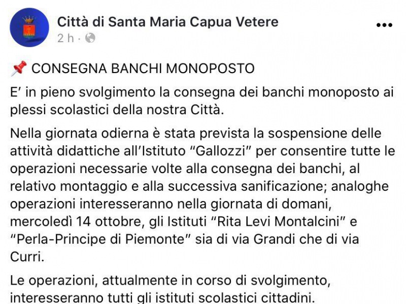 Questo quanto pubblicato sulla pagina FB del Comune di SMCV