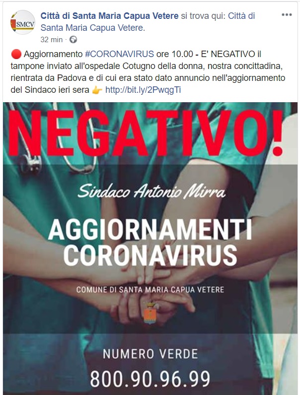 Questo quanto apprendiamo dalla pagina FB del Comune di SMCV