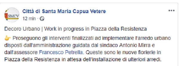 Questo il post pubblicato sulla pagina fb 'Città di Santa Maria Capua Vetere'