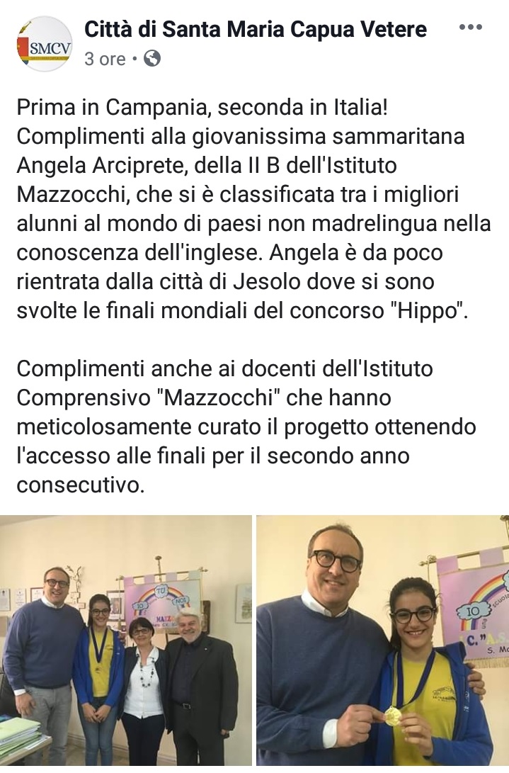 Apprendiamo di questa bella notizia dalla pagina Facebook del Comune di SMCV