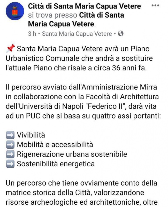 Questo quanto pubblicato sulla pagina fb del Comune di SMCV