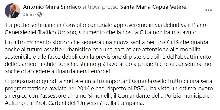 Questo quanto pubblicato sulla pagina facebook del Sindaco Mirra: