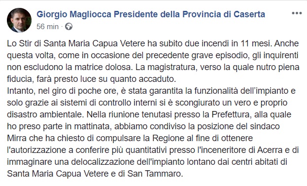 Questo quanto pubblicato sulla pagina facebook del Presidente della Provincia