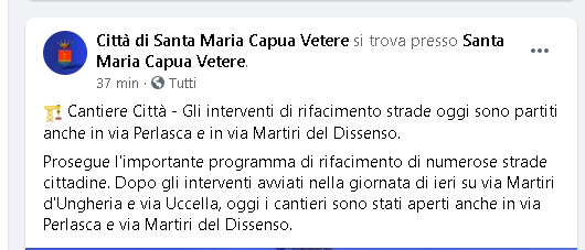 Lo apprendiamo dalla pagina Facebook Città di Santa Maria Capua Vetere.