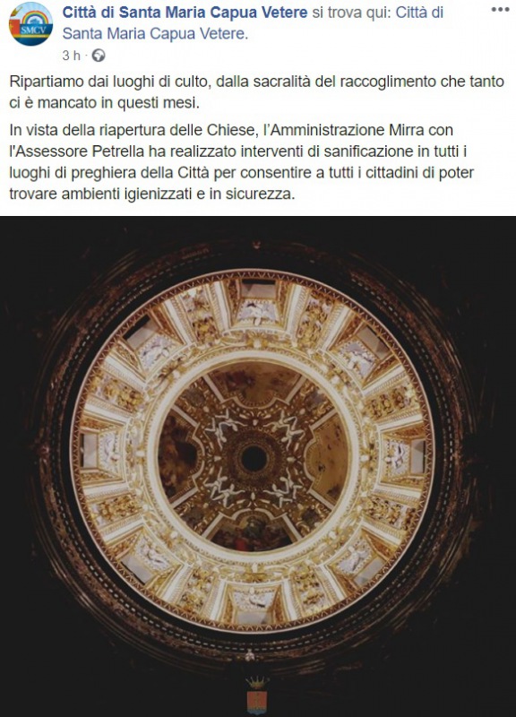 Questo quanto apprendiamo dalla pagina facebook del Comune di SMCV: