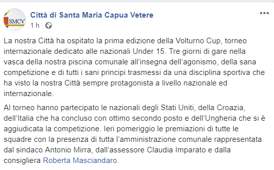 Questo il post pubblicato sulla pagina Facebook del Comune di Santa Maria Capua Vetere: