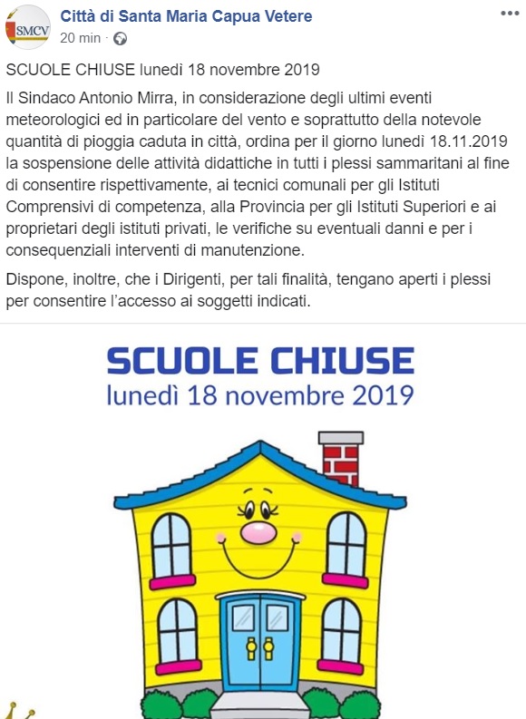 Questo quanto apparso sulla pagina Facebook Città di Santa Maria Capua Vetere: