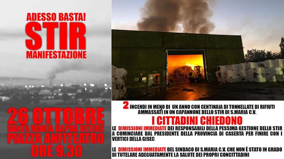 Sabato 26 ottobre alle ore 9:30, in piazza Anfiteatro a SMCV vi sarà una manifestazione dei cittadini contro gli incendi che si sono avuti presso lo Stir. Noi di Gold WebTv seguiremo la manifestazione con immagini live ed interviste ai protagonisti.