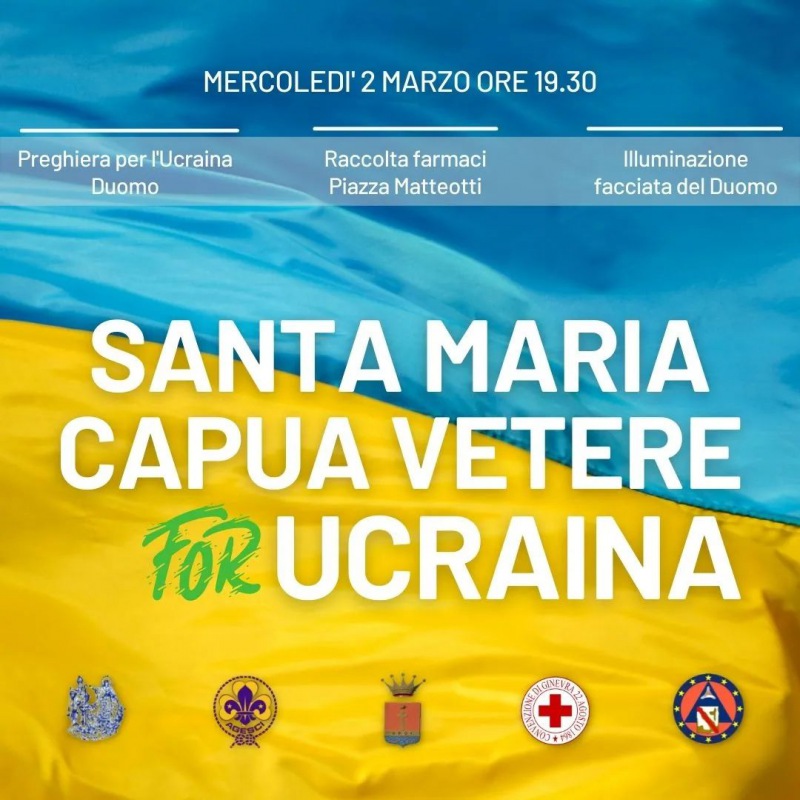 "Mercoledì 2 marzo, dalle ore 19.30, il Duomo di Santa Maria Capua Vetere con l’antistante piazza Matteotti faranno da cornice alle iniziative promosse dall’Amministrazione Comunale guidata dal Sindaco Antonio Mirra in sinergia con la comunità ucraina presente sul territorio cittadino e con la collaborazione del gruppo scout Agesci SMCV 1, della Protezione civile, della Croce Rossa Italiana e della parrocchia Santa Maria Maggiore. -Si legge nella nota- La comunità Sammaritana potrà far sentire la propria vicinanza a tutte le donne e gli uomini ucraini in un momento di preghiera officiato da don Mario Miele e da don Mariann, parroco della parrocchia ucraina “Entrata della Madonna nel Tempio”; in piazza Matteotti, il gruppo scout, la Protezione civile e la Croce rossa procederanno alla raccolta di farmaci, così come concordato con la comunità ucraina, dove potranno essere portati bende, siringhe monouso, lacci emostatici, kit di primo soccorso, antibatterici e integratori di potassio e magnesio. -Si legge nella nota- Tutto questo mentre la facciata del nostro Duomo sarà illuminata con i colori della bandiera dell’Ucraina. Giovedì 3 marzo, invece, su proposta congiunta di maggioranza e minoranza, in Consiglio Comunale verrà proposta l’approvazione di un ordine del giorno con il quale, oltre a condannare fermamente l’invasione dell’Ucraina, ci si impegna a far sentire al popolo ucraino la solidarietà dei cittadini sammaritani."