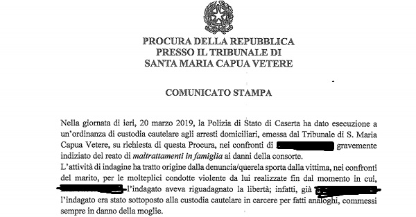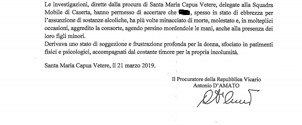 Questo parte del comunicato inviatoci dalla Procura della Repubblica presso il Tribunale di Santa Maria Capua Vetere.