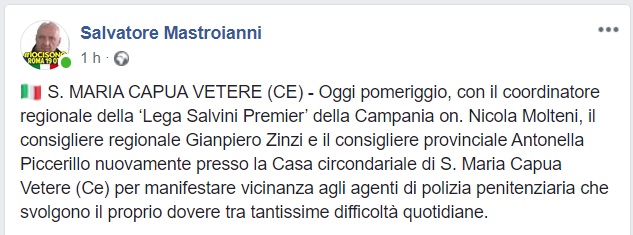 Questo quanto pubblicato dal Segretario Provinciale della Lega a Caserta Mastroianni