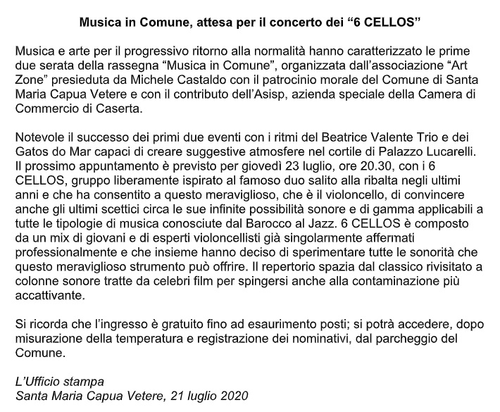 Pubblichiamo nota stampa Comune di SMCV