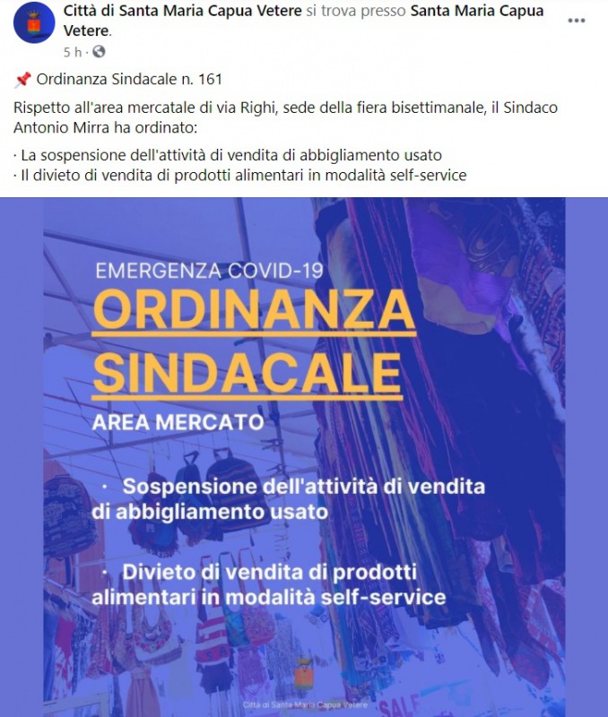 Questo quanto apprendiamo dalla pagina facebook del Comune di SMCV: