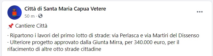 Questo quanto pubblicato sulla pagina fb del Comune di SMCV