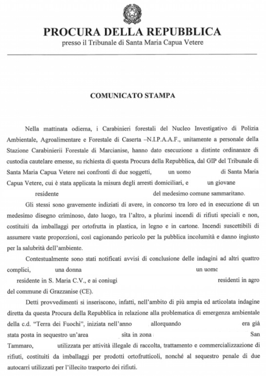 Pubblichiamo nota stampa della Procura di SMCV