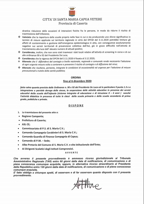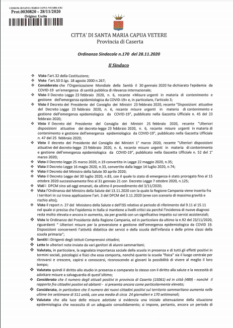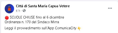 Lo apprendiamo dalla pagina Facebook 'Città di Santa Maria Capua Vetere'.