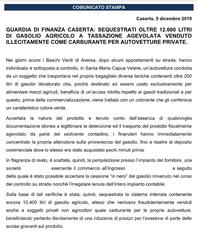 Pubblichiamo nota stampa del Comando Provinciale Caserta della Guardia di Finanza