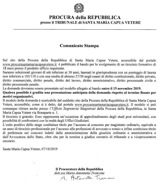 Questo il comunicato della Porcura della Repubblica di SMCV giunto in redazione: