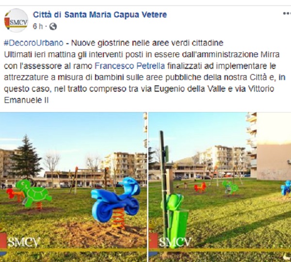 Questo il post pubblicato sulla pagina fb 'Città di Santa Maria Capua Vetere'.