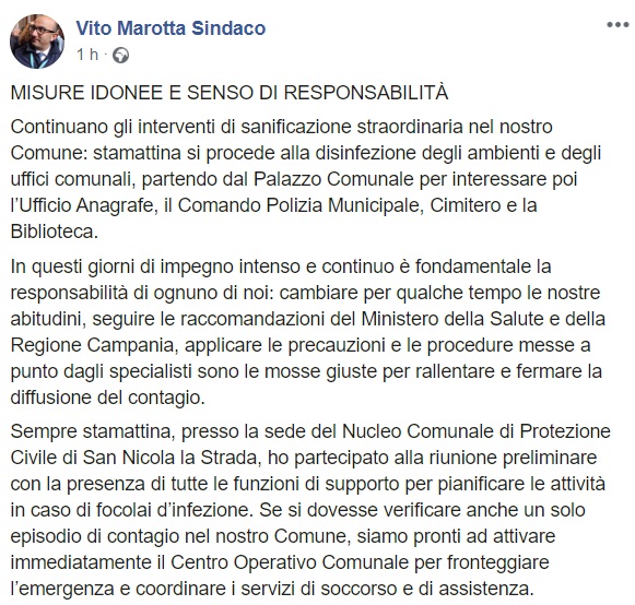 Questo quanto apprendiamo dalla pagina facebook del Sindaco Marotta: