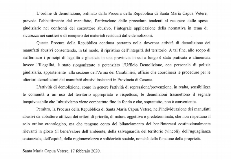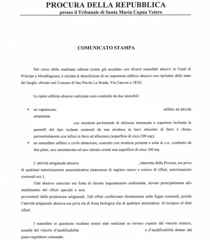 Questa parte della nota stampa della Procura di Santa Maria Capua Vetere: