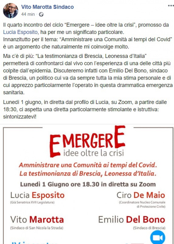 Questo quanto apprendiamo dalla pagina facebook del Sindaco Marotta: