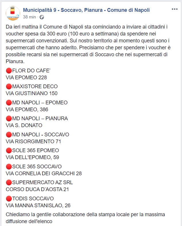 Questo quanto pubblicato dalla pagina fb della Municipalità Soccavo-Pianura