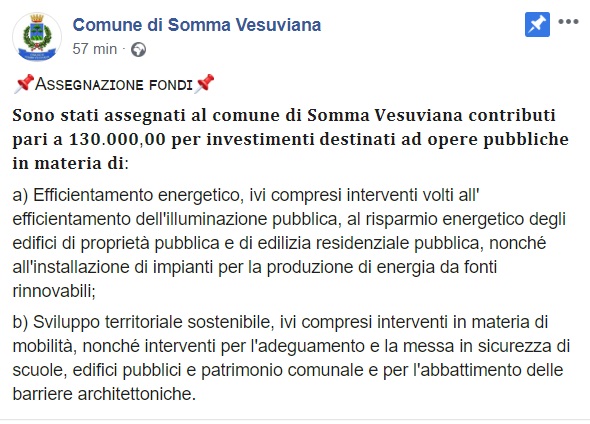 Questo quanto pubblicato su facebook dal Comune di Somma Vesuviana:
