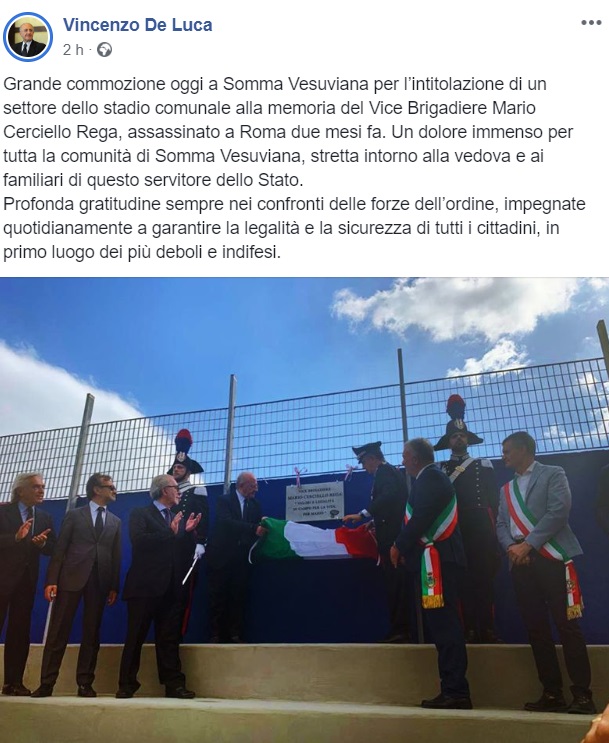 Questo quanto pubblicato sulla pagina Facebook del Presidente della Regione Campania, Vincenzo De Luca: