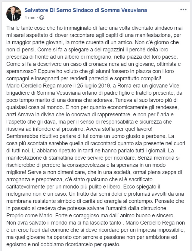Questo quanto pubblicato dal Sindaco Di Sarno