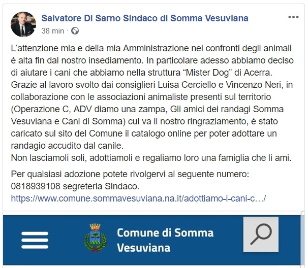 Questo il pensiero espresso dal Sindaco Salvatore Di Sarno sul suo profilo Fb.