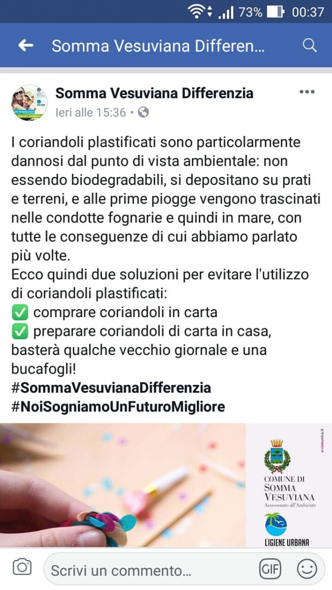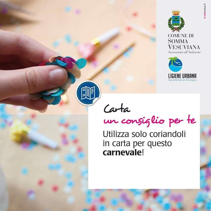 Il Comune di Somma Vesuviana vuole sensibilizzare la cittadinanza attraverso questa campagna affinchè si utilizzino solo coriandoli di carta.