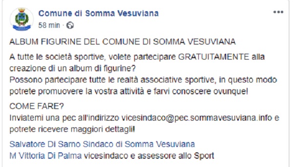Questo il post pubblicato sulla pagina fb ufficiale del Comune di Somma Vesuviana.