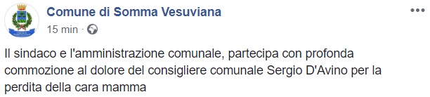 Questa quanto apparso sulla pagina Facebook del Comune di Somma Vesuviana:
