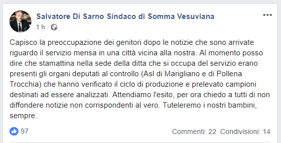 Il Sindaco di Somma Vesuviana Salvatore Di Sarno ha espresso il suo parere riguardo agli ultimi episodi della mensa scolastica.