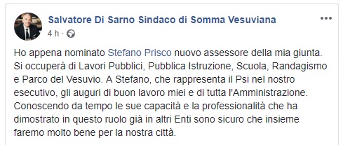 Nuovo membro nell'esecutivo dell'amministrazione di Salvatore Di Sarno al Comune di Somma Vesuviana.