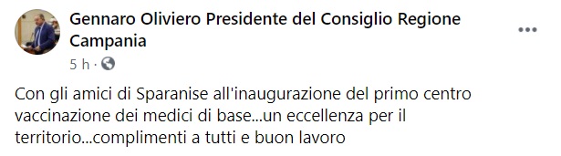 "Con gli amici di Sparanise all'inaugurazione del primo centro vaccinazione dei medici di base...un eccellenza per il territorio...complimenti a tutti e buon lavoro"
