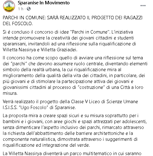 Lo apprendiamo dalla pagina Facebook Sparanise in Movimento.