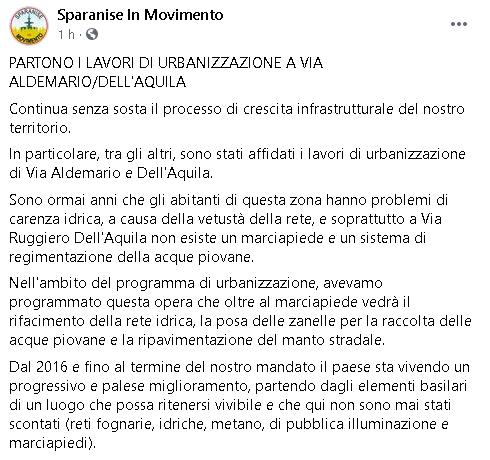 Lo apprendiamo dalla pagina Facebook di Sparanise in Movimento.