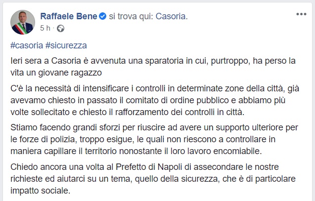 Questo quanto pubblicato dal Sindaco di Casoria