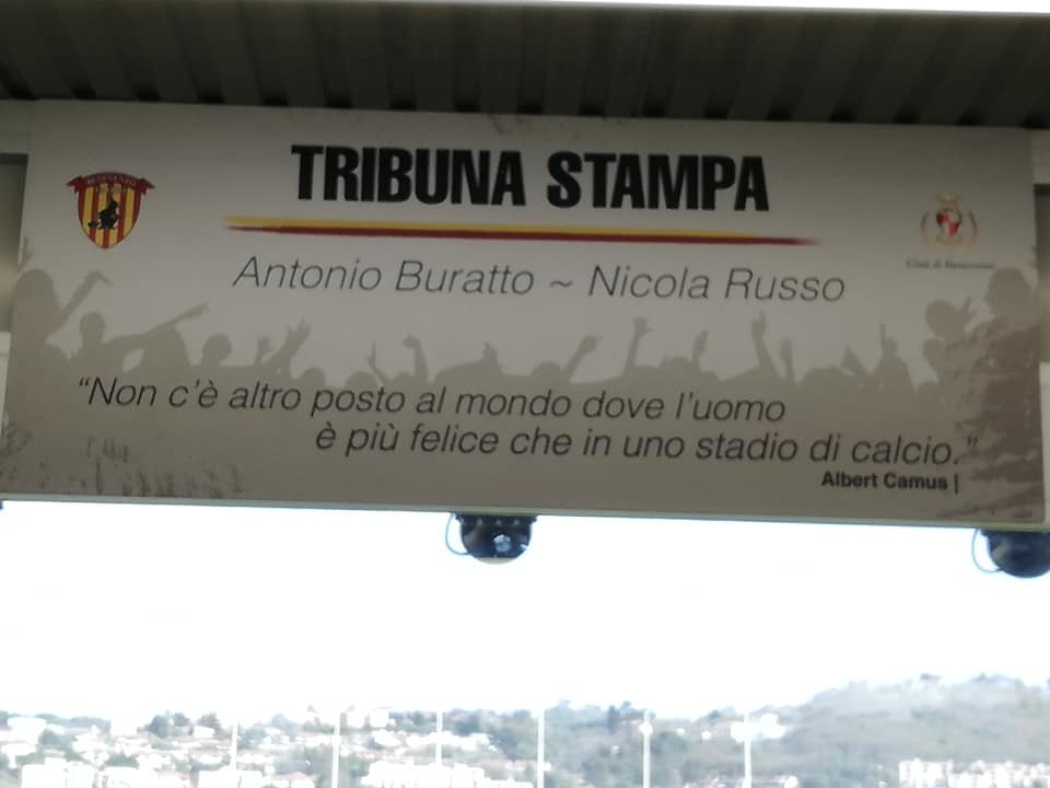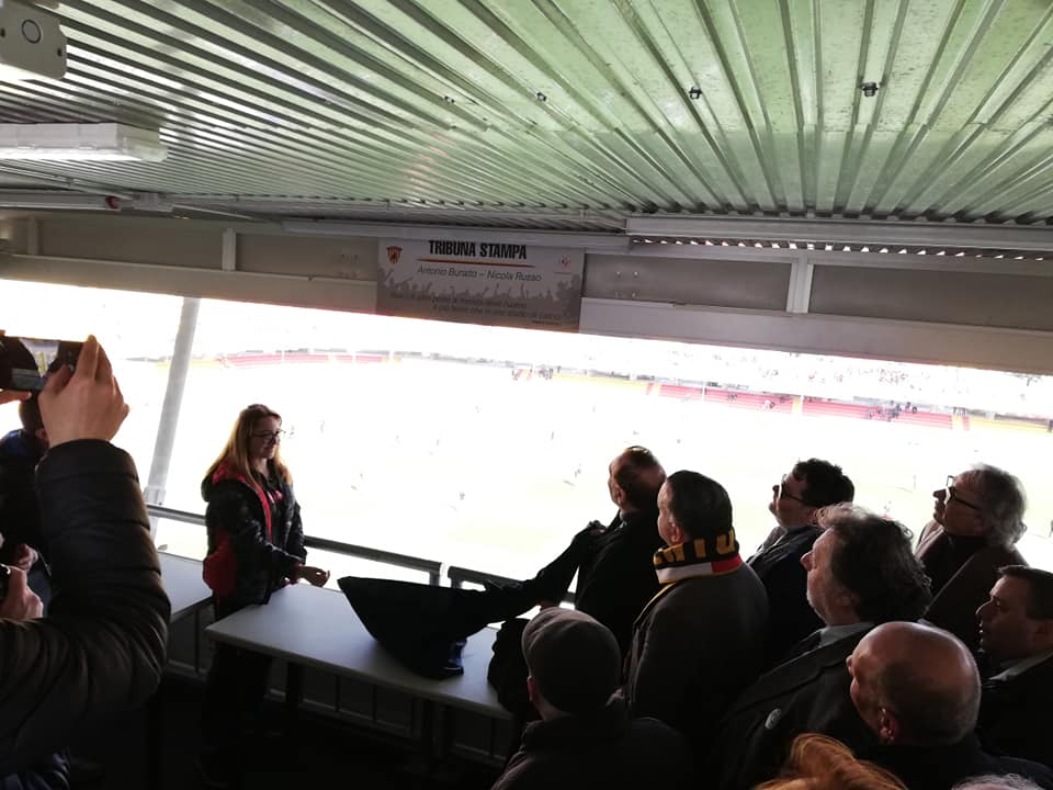 "La cerimonia d'intitolazione della nuova tribuna stampa dello stadio "Ciro Vigorito" ai giornalisti Antonio Buratto e Nicola Russo".