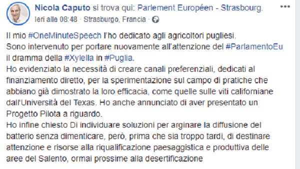 Questo il post pubblicato sulla pagina fb dell'On.Nicola Caputo.