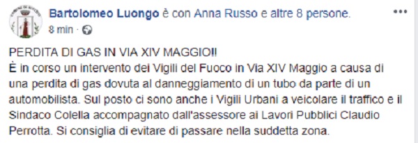 Questo il post pubblicato sulla pagina fb ufficiale 'Bartolomeo Luongo' - Portavoce Sindaco Succivo.