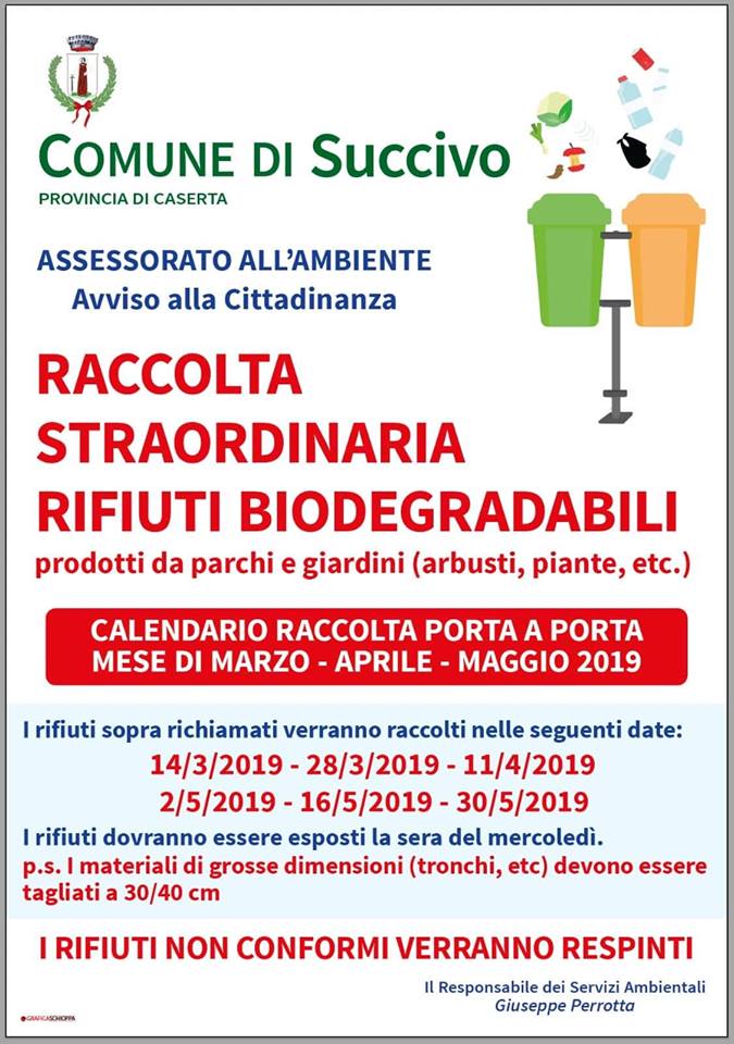 "CALENDARIO RACCOLTA STRAORDINARIA RIFIUTI BIODEGRADABILI Leggere con attenzione le date indicate nel manifesto."