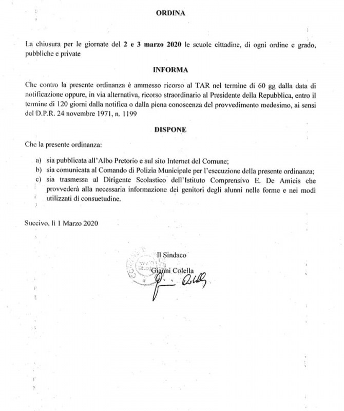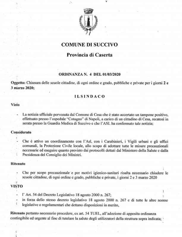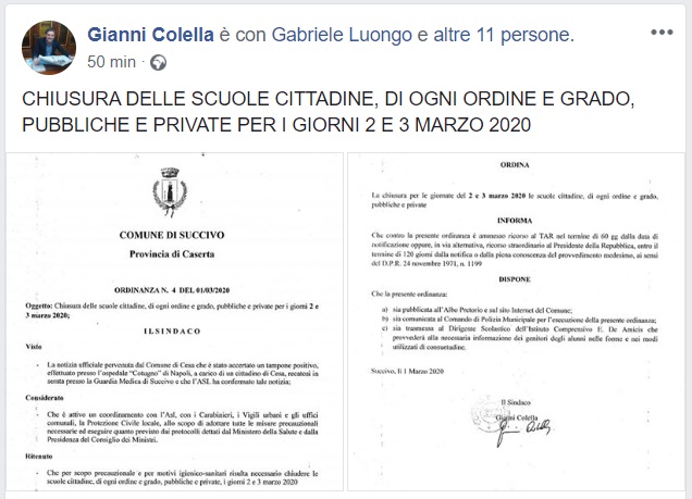 Questo quanto apprendiamo dal profilo del Sindaco di Succivo Gianni Colella