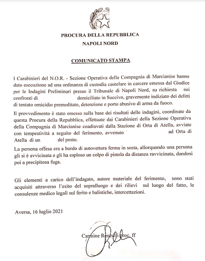 Questa parte della nota stampa diffusa dalla Procura della Repubblica di Napoli Nord
