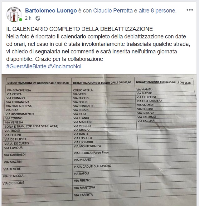 SUCCIVO. Il calendario completo e tutte le strade della deblattizzazione