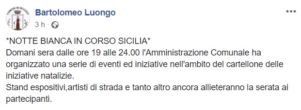 Questo quanto pubblicato su facebook dal portavoce del Sindaco, Bartolomeo Luongo: