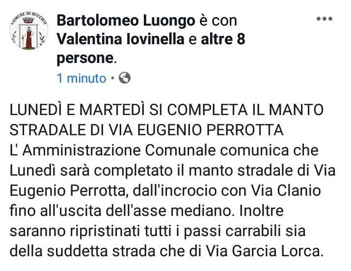 Apprendiamo la notizia dal portavoce del Sindaco di Succivo Gianno Colella quanto segue